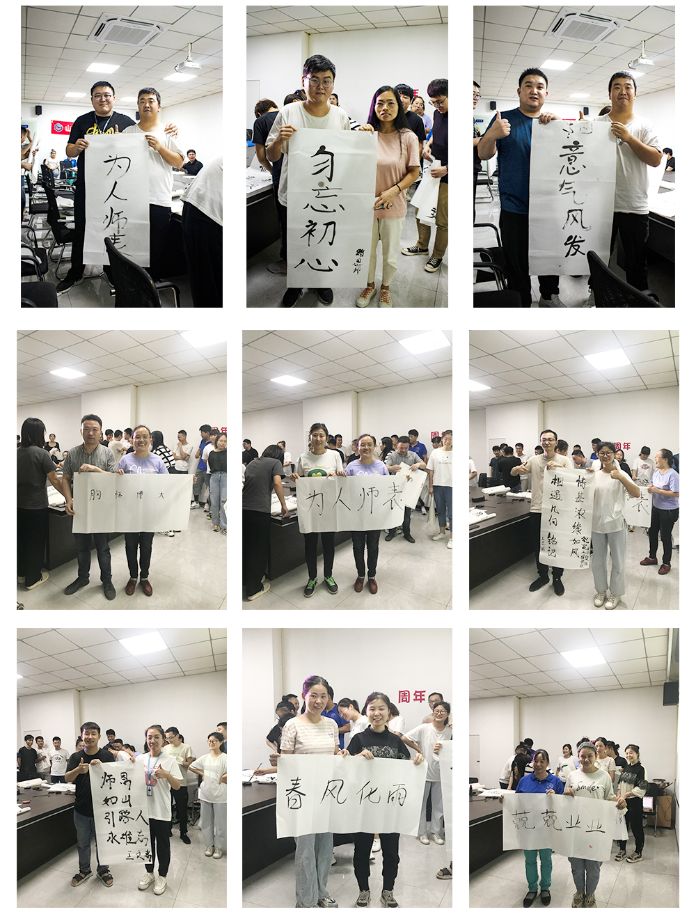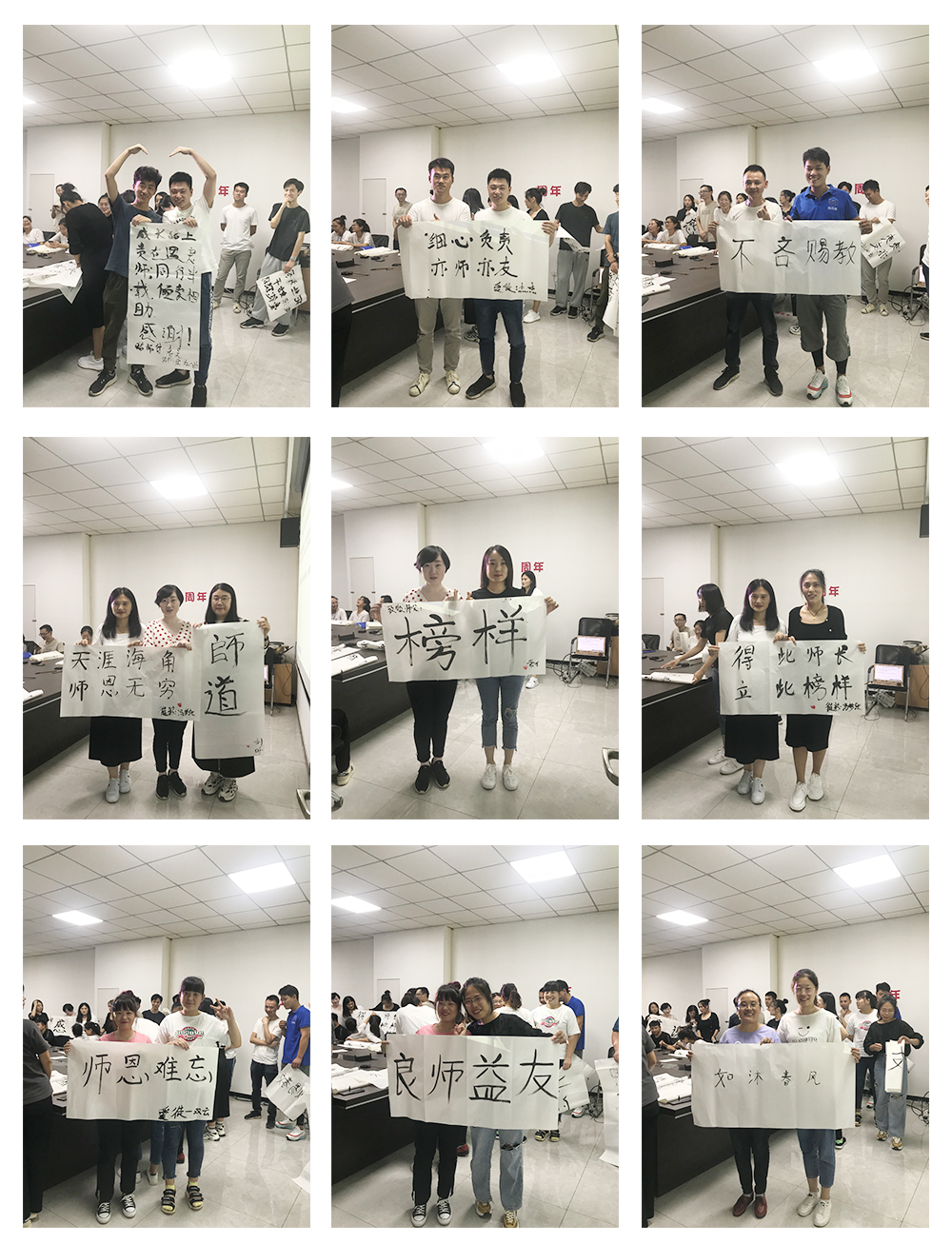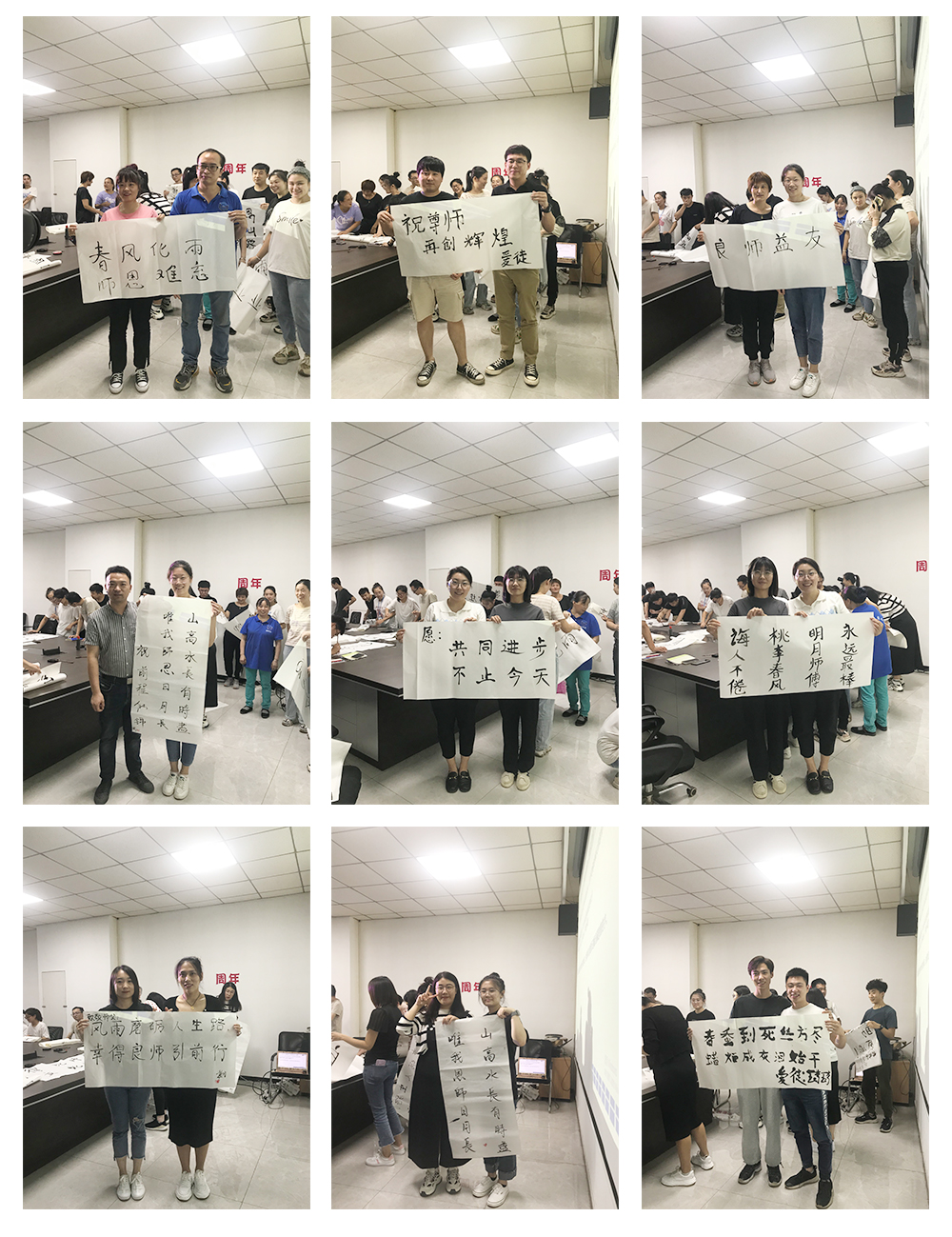 第二個環節是徒弟為師父寫一幅字,表達對師父的感恩與敬意。在此期間師父與徒弟共同完成書法,徒弟將書法雙手獻給自己的師父,并與師父合影留念。濃濃的師徒情誼感染了在場的每一個人。相信在以后的工作中也定會師徒齊心,完成前方的困難與挑戰。