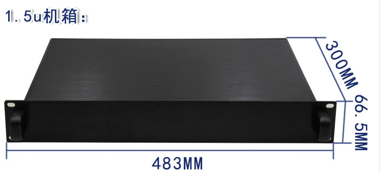 1.5U全鋁/鈑金機箱1.5U300mm深,其他深度需進行定制,具體尺寸為66.5x483x300MM,價格為279元。