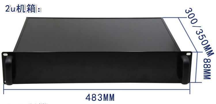 2U機箱分為300mm深和350mm深兩個型號,尺寸分別為88x483x300/350mm。