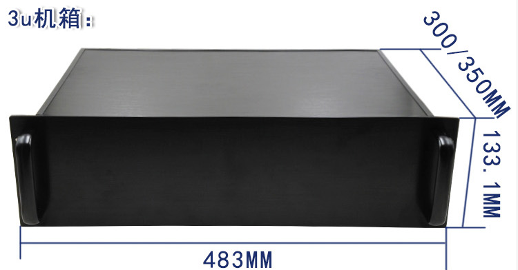3U全鋁/鈑金機箱300mm深與350mm深兩個型號尺寸分別為133.1x483x300/350MM,價格分別為345元和396