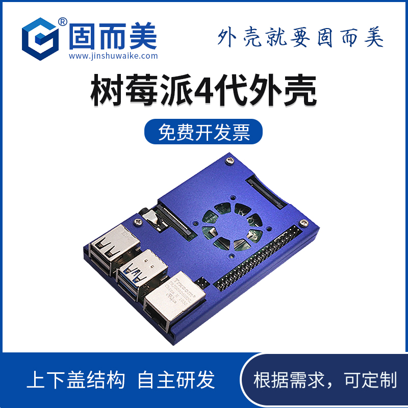 好馬配好鞍,一套優秀的硬件要搭配更加成熟穩定的外殼,固而美是專注于做精密金屬外殼的公司,專業提供樹莓派4代和3代的產品外殼方案,支持按需定制,這款樹莓派外殼材質上選用的是1.0mm的鍍鋅鋼板,美觀大氣,結實耐用。外殼表面進行了藍色靜電噴塑,造型時尚,科技感十足!結構上選用了上下蓋的結構方式,支持安裝卡扣,易安裝拆卸,維護檢修,簡約大方。